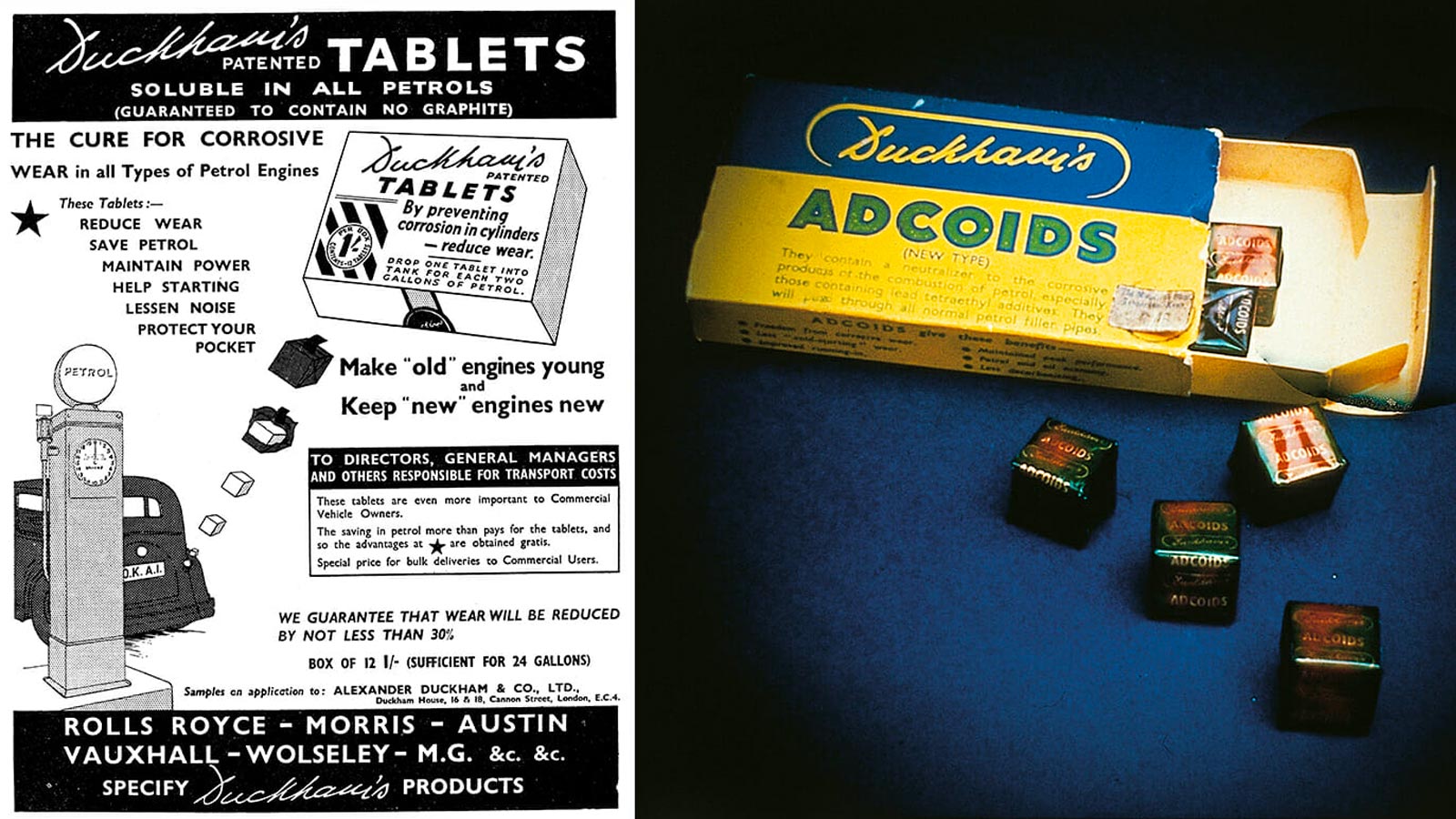 DUCKHAMS DEVELOPS THE REVOLUTIONARY 'ADCOIDS' FUEL TREATMENT TABLET.