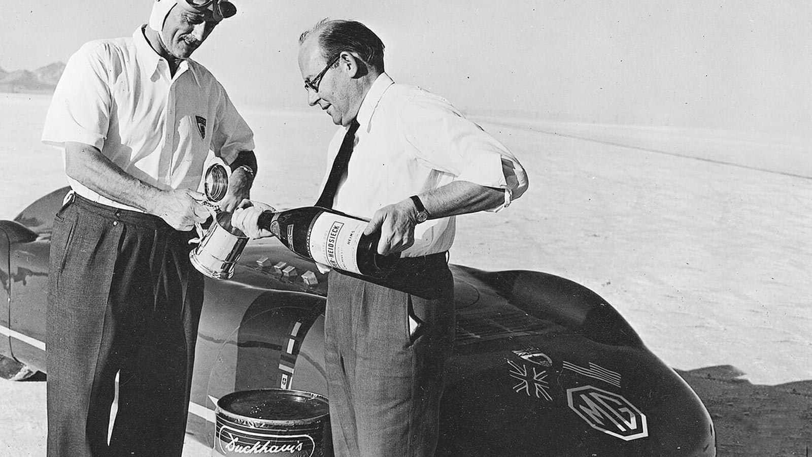 Goldie Gardner breaks the land speed record in Utah with his MG using Duckhams oil.