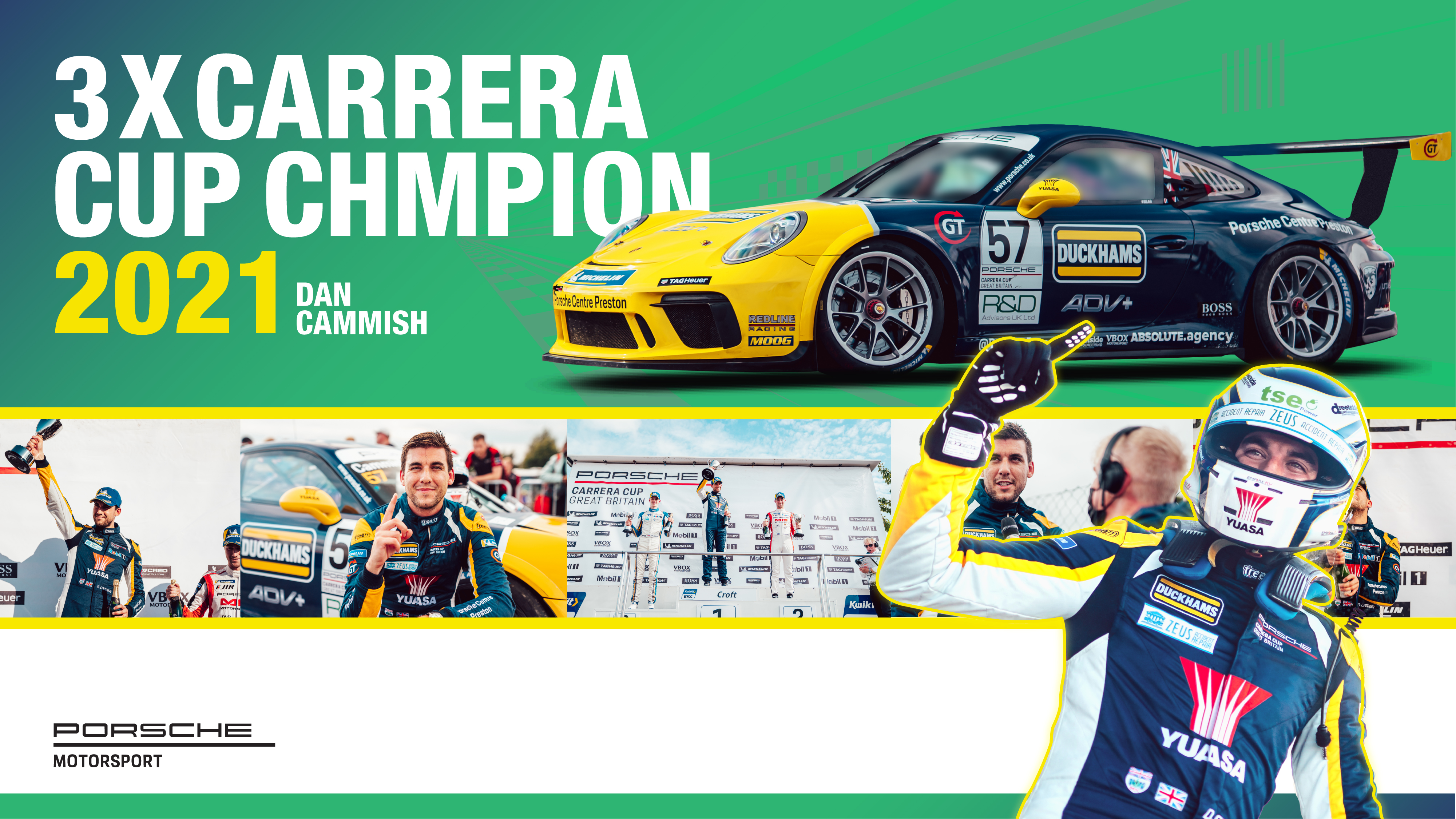 Duckhams sponsored Dan Cammish wins Porsche Carrera Cup GB.